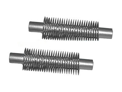 鋼制繞片螺旋翅片管是采用直繞式加工工藝,即在一根優(yōu)質(zhì)無縫鋼管上,通過專用繞片機(jī),把優(yōu)質(zhì)鋼帶靠機(jī)械力緊密、均勻地纏繞在基管外表面,兩端進(jìn)行點(diǎn)焊固定;然后將鋼制繞片翅片管整體進(jìn)行熱鍍鋅處理。
