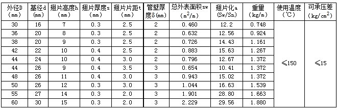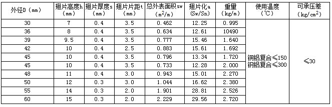 雙金屬?gòu)?fù)合翅片管參數(shù)表