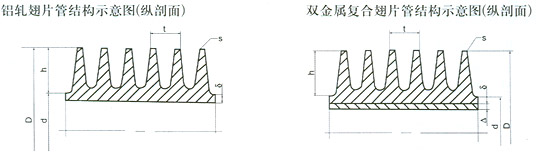 鋁軋翅片管結(jié)構(gòu)示意圖(縱剖面) D翅片管外徑 δ翅片管壁厚 t翅片片距離 s翅片厚度 h翅片高度  |