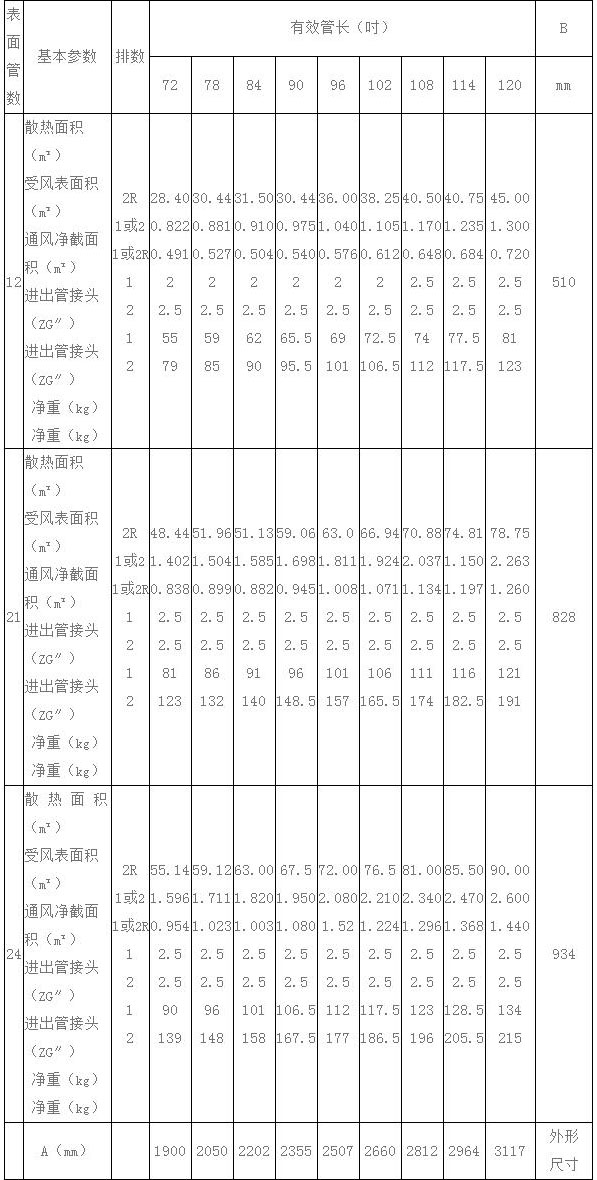 ③—散熱器表面管數(shù)(根)